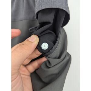 Lightweight and flexible, these men’s Lululemon joggers are made from a soft, quick-drying recycled polyester blend with added stretch for unrestricted movement (see measurements below). They feature an elastic waistband with drawstring, side zip pockets, ventilated panels behind the knees for breathability, and elastic cuffs for a secure fit. Designed in Vancouver and made for running, training, or casual athleisure wear.
