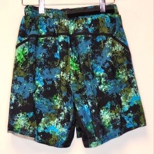 Lululemon Surge Short 7" Built-in liner In Blue Green Black Abstract Prints SZ S