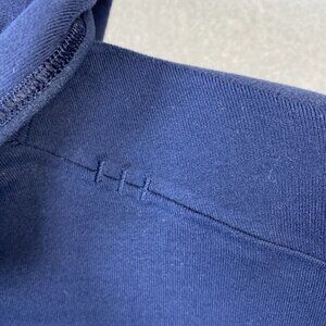 Crafted for the active man, the Lululemon Surge Warm 1/2 Zip Hoodie Mens XL Navy Blue Hooded Windbreaker Jogging top offers a blend of function and style. The navy blue hooded windbreaker shell, made from a high-quality nylon and Lycra blend, provides a lightweight yet durable layering option for a range of activities, including walking, cycling, and hiking. Its softshell fabric ensures comfort and flexibility during movement, while the synthetic insulation keeps you warm during the cooler seasons of fall, spring, and summer. The jacket features a convenient 1/4 zip closure, along with zippered pockets to secure your essentials while on the go. Taped seams ensure rain stays out, making it an ideal companion for outdoor adventures or casual wear. Designed with a regular fit and sized XL, this Lululemon jacket is machine washable for easy care, ensuring it's always ready for your next outing.