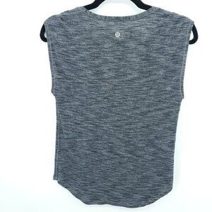Lululemon Sweat Times Short Sleeve 4 Heathered Black, GUC with some wear (a little staticky/sticks to itself), no flaws. Missing size tag, but fits like a 4 (see measurements below).