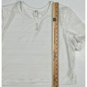 Lululemon Sweat Your Heart Out Short Sleeve Top sz 10 White Mesh Workout Yoga