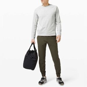 Lululemon men's pullover, City Sweat, gray sweatshirt, lightweight crewneck, minimalist activewear, gym to street style, men's size small, French terry, athleisure basics