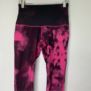 These are pink and black high rise leggings with an extra mesh fabric for extra support. They are in great pre owned condition no stains or flaws.
