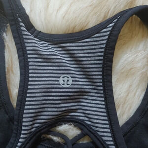 Lululemon Sweaty Or Not Bra II Mini Pop Stripe Heathered Slate Black Sz 2 NO PADS