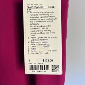 Lululemon Swift Speed HR crop- 23” raspberry color NWT