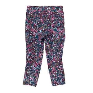Pink and teal floral cropped leggings. High rise. Inside drawstring. Back zip pocket.