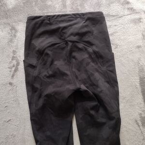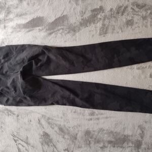 Stylish black camouflage leggings. Sleek design with subtle pattern. Perfect for active wear.