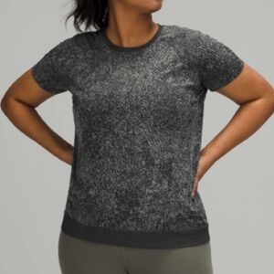 Lululemon Swiftly Breathe Short Sleeve Floral Fauna Black Rhino Grey Size 6