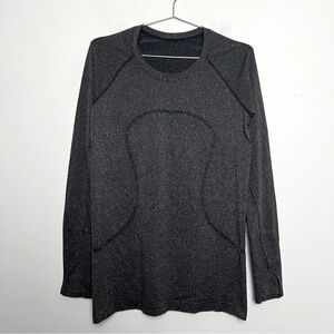 Lululemon Swiftly Speed Long Sleeve *shine = Silver metallic thread. Designed for: Run Fit: Body Skimming, hip length