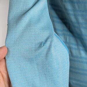 Lululemon Swiftly Tech Blue Striped Long Sleeve Exercise Workout Shirt 10. A few pulls in the fabric on the back shoulder/sleeve (see photos)