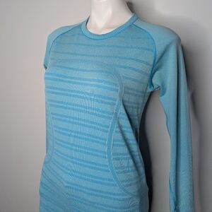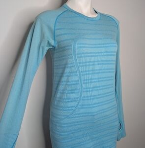 Lululemon Swiftly Tech Blue Striped Long Sleeve Exercise Workout Shirt 10