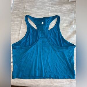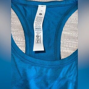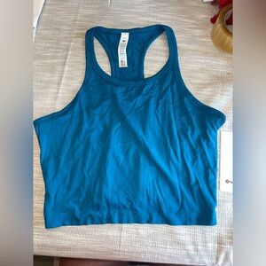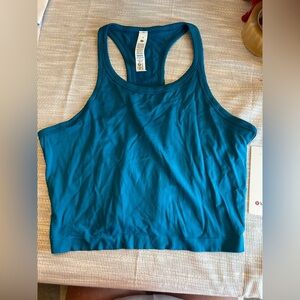 New with tags! Authentic Lululemon Swiftly Tech Cropped Racerback Tank 2.0 in size 14 and stunning Hawaiian Blue (HWIB).