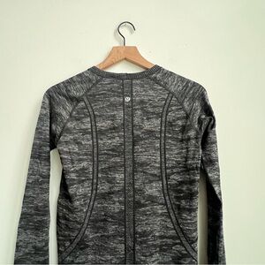 Lululemon Swiftly Tech Long Sleeve Crew Heathered Black /White 8 Athletic Top