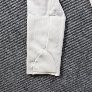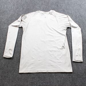 Lululemon Swiftly Tech long sleeve crew in a light white/ivory tone, perfect as a running top or lightweight base layer. Seamless knit fabric with engineered mesh keeps it breathable while the thumbhole cuffs add extra cozy coverage. Gently worn with light overall wash wear and faint wrinkling, but no stains, holes, or major flaws seen. Color may vary slightly from photos due to lighting and monitor settings.