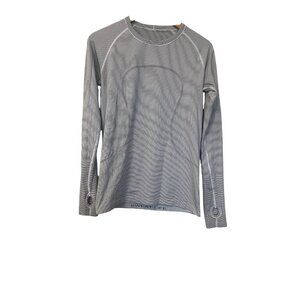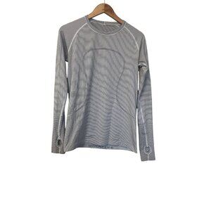 Lululemon Swiftly Tech Long-Sleeve Shirt, black and white, size 10.