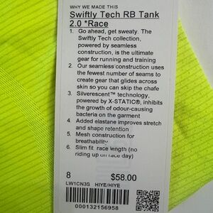 Lululemon Swiftly Tech Racerback 2.0 *Race Length in Highlight Yellow