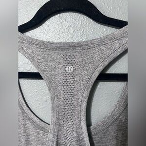 Lululemon Swiftly Tech Racerback Gray Tank Top Women Sz 10 BU Logo Athletic EUC