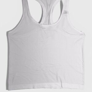 Lululemon Swiftly Tech Racerback Tank Top 2.0 in white, waist-length and size 8. Built for performance with a lightweight, breathable, sweat-wicking knit that skims the body and moves with you. Minimal seams reduce chafing, and the racerback design keeps shoulders free for running, training, or everyday wear. (Lululemon)