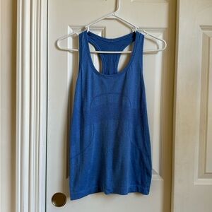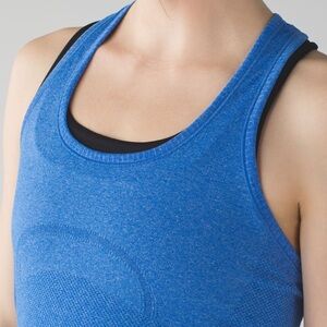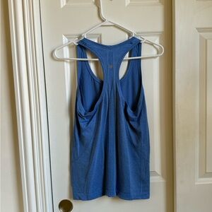 Lululemon racerback tank in a vibrant blue. Perfect for workouts. Original color name “Heathered Pipe Dream Blue”