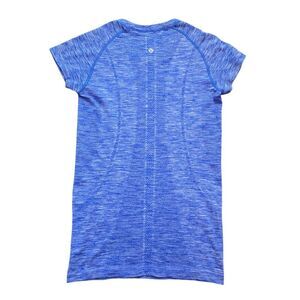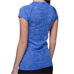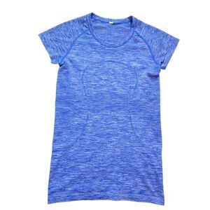 Lululemon Swiftly Tech Short Sleeve Crew in Space Dye Heathered Harbour Blue, size 6. We designed this anti-stink short sleeve with running (and sweating) in mind. Silverescent technology, powered by X-STATIC, inhibits the growth of odor-causing bacteria on the garment. No side seams—seamless construction in the body minimizes chafing.
