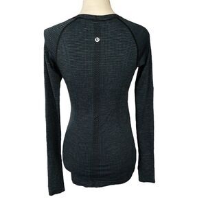 Designed for active individuals, this Lululemon long sleeve top combines style and functionality. Its striped design adds a touch of elegance while the polyester blend provides comfort and flexibility. Ideal for workouts or casual wear, the top ensures ease of movement with its lightweight, breathable fabric.