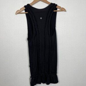 Lululemon Swiftly Tie Waist Black Scoop Neck Ruffle Racerback Tank Top Size: 6