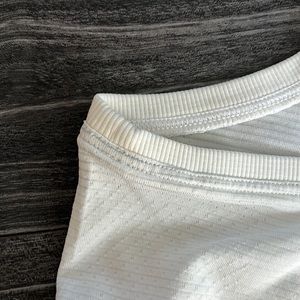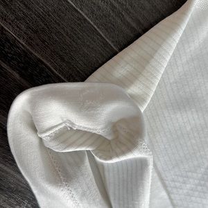 White. Size 8. I think I wore maybe twice. Too big for me. Minor discoloration under arms-not noticeable while wearing -see photo.