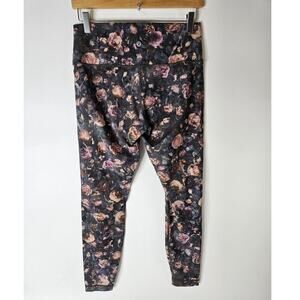 Lululemon Sz 10 Leggings Rose Pink Floral Gray Tight Yoga Running Unique