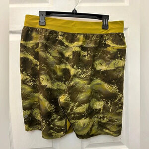 Lululemon T.H.E. Linerless Short 7" Mens XL High Dive Auric Gold Green Marble