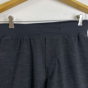 This listing is for a pair of Lululemon Mens T.H.E. Shorts 11" Linerless. Black/Grey. Elastic waist / drawstring/ pockets / zip pocket at the hip.