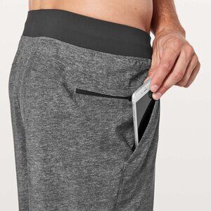 Lululemon T.H.E. Short Linerless 11" Heathered Texture Printed Greyt Deep Coal L