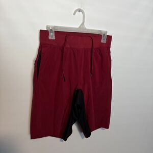 Lululemon THE Shorts Mens Small Red Lined Workout Train Gym Performance Stretch