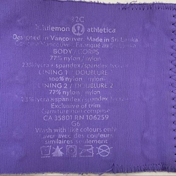Older style but still very good condition with no issues. Size is printed on & the text is worn away some but it is a 32C. No removable pads included but there is a spot for them. 4 hook setting for adjustable fit & can be worn criss-cross or straight. Luxtreme material in power purple. Fits best size 4/6.