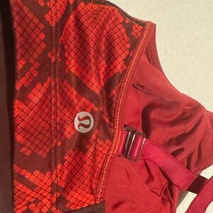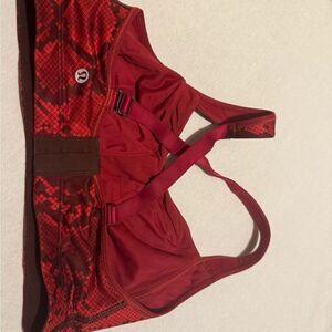 Lululemon Ta Ta Tamer III 34DD Snake Red Tide Cranberry Sports Bra Logo NO PADS