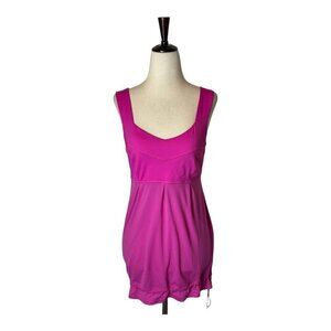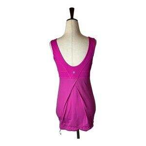 This Tame Me tank from Lululemon is in great condition. It is in a solid hot pink color called "Paris Perfection". In order to stay cool but keep our ladies under wraps, Lululemon developed this breezy tank to fit comfortably over their favorite sports bra. The loose-fitting bodice of this tank is created with breathable mesh for added airflow when things start to get sweaty. It features; breathable Mesh fabric, cinchable continuous drawcord in the bottom hem, wide straps, lightweight Luxtreme in the bust, chafe-resistant flat seams and low support.