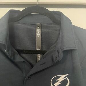 Lululemon Tampa Bay Lightening Stylish navy polo shirt featuring a sleek logo design. Ideal for both casual and semi-formal settings.