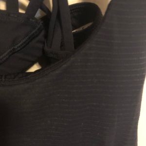Cross back/open back Lululemon tank top. Love the Wild back and the material is SO soft. It is black but has a thin metallic gold striping.
