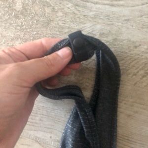 Worn a handful of times. Subtle stripe. Snaps for sports bra straps. High cut sides. No flaws.