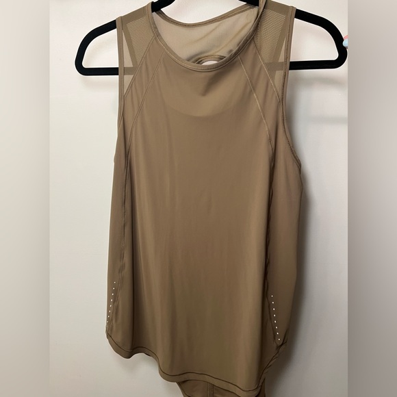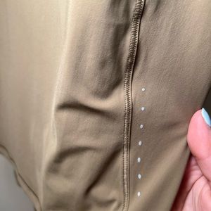 Can’t find size, fits like M/L or 8/10. Brownish / green in color. Very soft, sleek material. Smoke free, pet free home.
