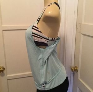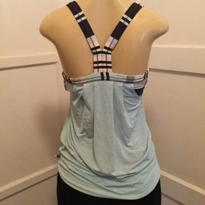 Lululemon Tank Top with built in bra size 6 White and Navy blue striped Bra with baby blue tank on top