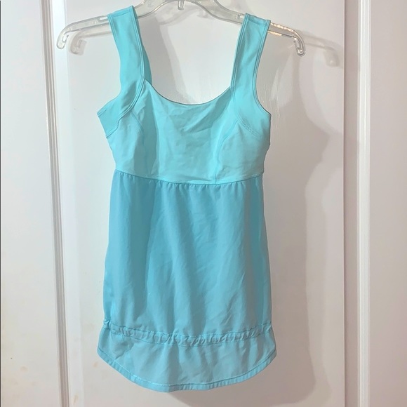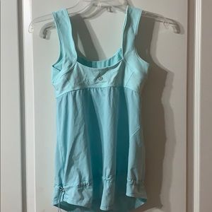 Baby blue lulu tank top with adjustable elastic band near the bottom. Almost perfect condition, barely ever worn. Athletic breathable material!
