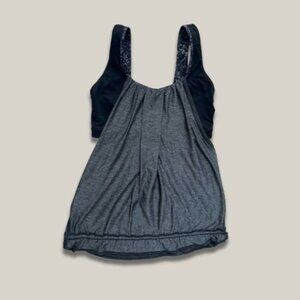 Lululemon Tank Top Built-In Shelf Bra Drawstring Cinch Patterned Strap Gray W 6