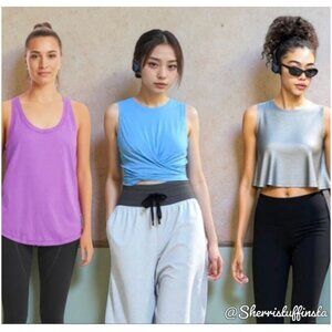 This Lululemon tank top bundle features three distinct styles designed for comfort and flexibility. The Love Tank, Muscle Love Crop, and Time To Restore Tank are crafted from premium materials, offering a range of options for workouts or casual wear. Each piece is tailored for a size 4 fit.