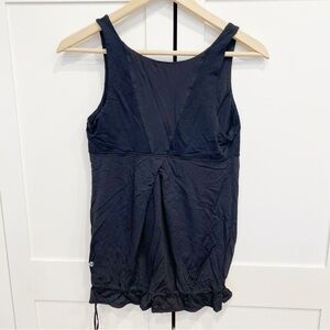 Lululemon Tank Top Size 8 Cinch Tie Bottom Tank Workout Yoga Pilates Athleisure. Color is black. Pre-owned excellent condition. No holes or stains. See pics for details.