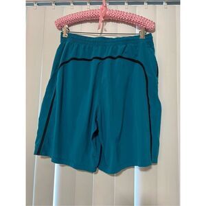 Lululemon teal blue men’s shorts. Size large FLAWS/ Small flaws/ snags