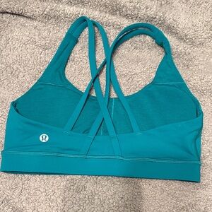 Comfortable and stylish teal sports bra with a supportive fit. Perfect for workouts and everyday wear.