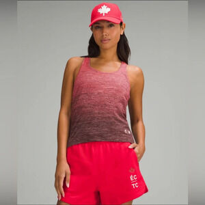 🆕🇨🇦 Lululemon Team Canada Swiftly Tech Waist Length Cherry Pop Dark Spor…