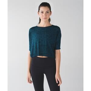 Lululemon Tee Shirt Womens 2 Blue Green Go Om Short Sleeve Mini Ghost Weave