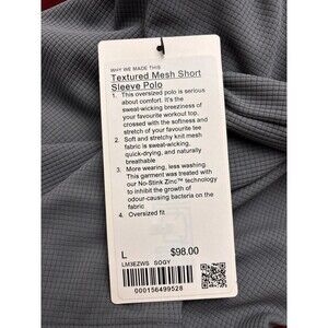 Lululemon Textured Mesh Polo Shirt Large Solar Grey Oversized No-Stink Zinc New