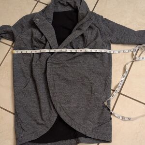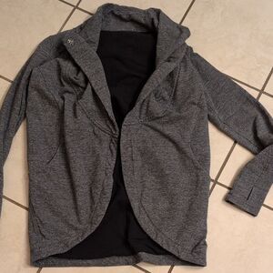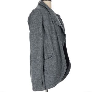 Lululemon That's A Wrap Heathered Snow Slub Coal Grey Sweater with thumb holes for easy layering and pockets. Excellent condition no rips or stains. Little to no pilling. Size 6 please see measurements pictures to be sure of fit. Retail: $128 If you like Lululemon check out my other lulu listings :)